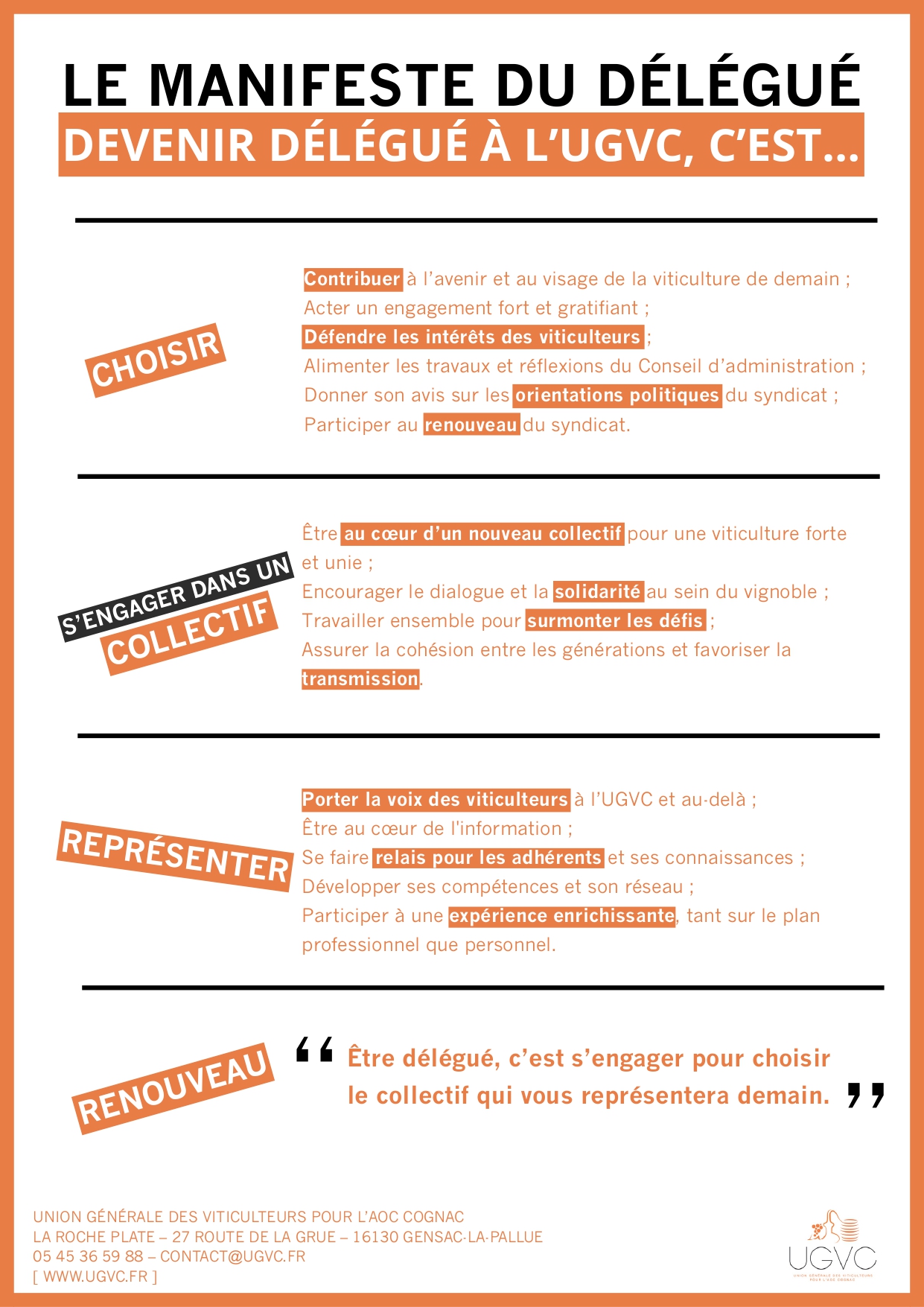 Le délégué joue un rôle majeur dans l’organisation du syndicat. Avant toute chose, c’est l’occasion pour lui de bénéficier d’un contact privilégié avec les élus professionnels afin de faire remonter ses préoccupations et ses attentes ainsi que celles des viticulteurs de son secteur.