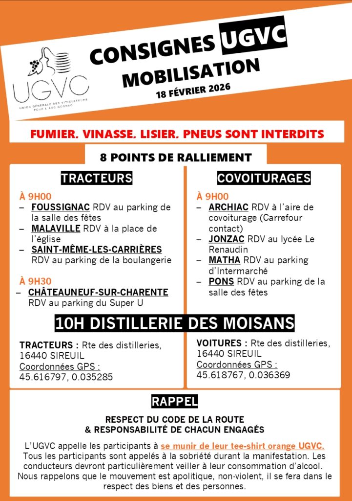 Trouvez ci-dessous, les consignes de l’UGVC à respecter, concernant la mobilisation du 18 février 2026.